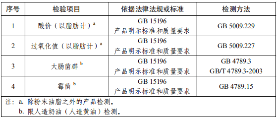 食用油脂制品檢測標準: