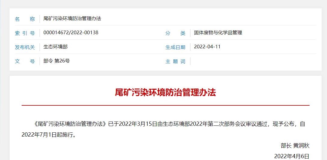 尾礦污染環(huán)境防治管理辦法